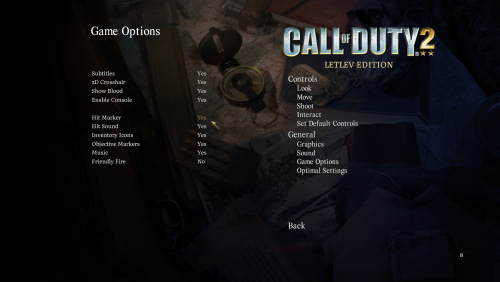 - Добавлена опция «Совместимость со Steam» для запуска мода через службу Steam, а не напрямую через CoD2SP_s.exe. Она позволяет пользоваться такими функциями Steam, как отслеживание проведённого в игре времени, внутриигровой оверлей и так далее (только для пользователей Steam-версии)