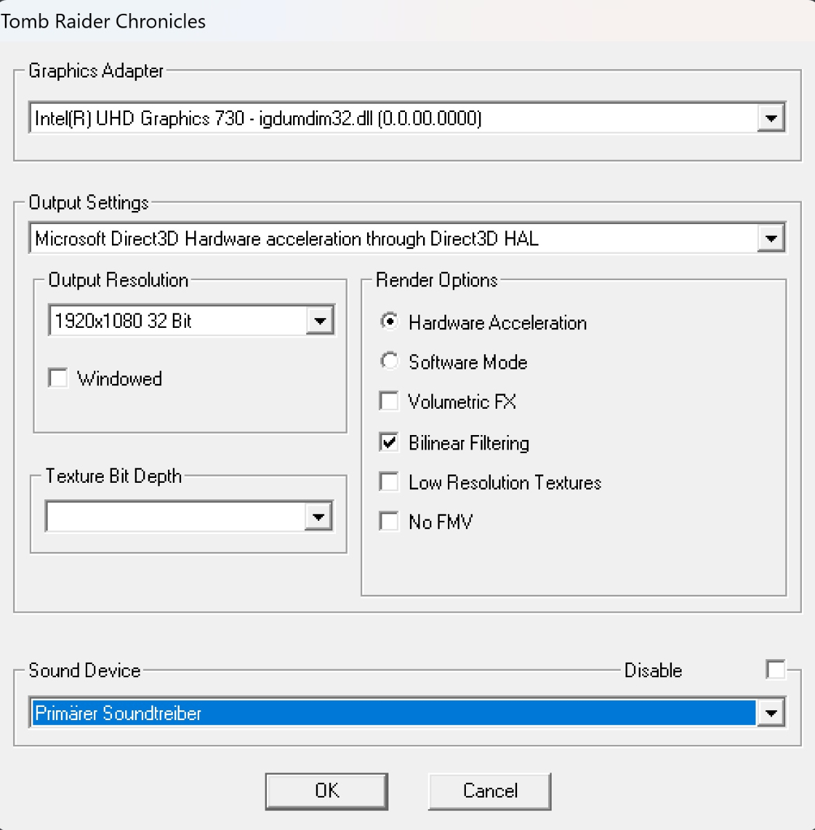 Grafikeinstellungen für Tomb Raider 5 (Windows 11) ...